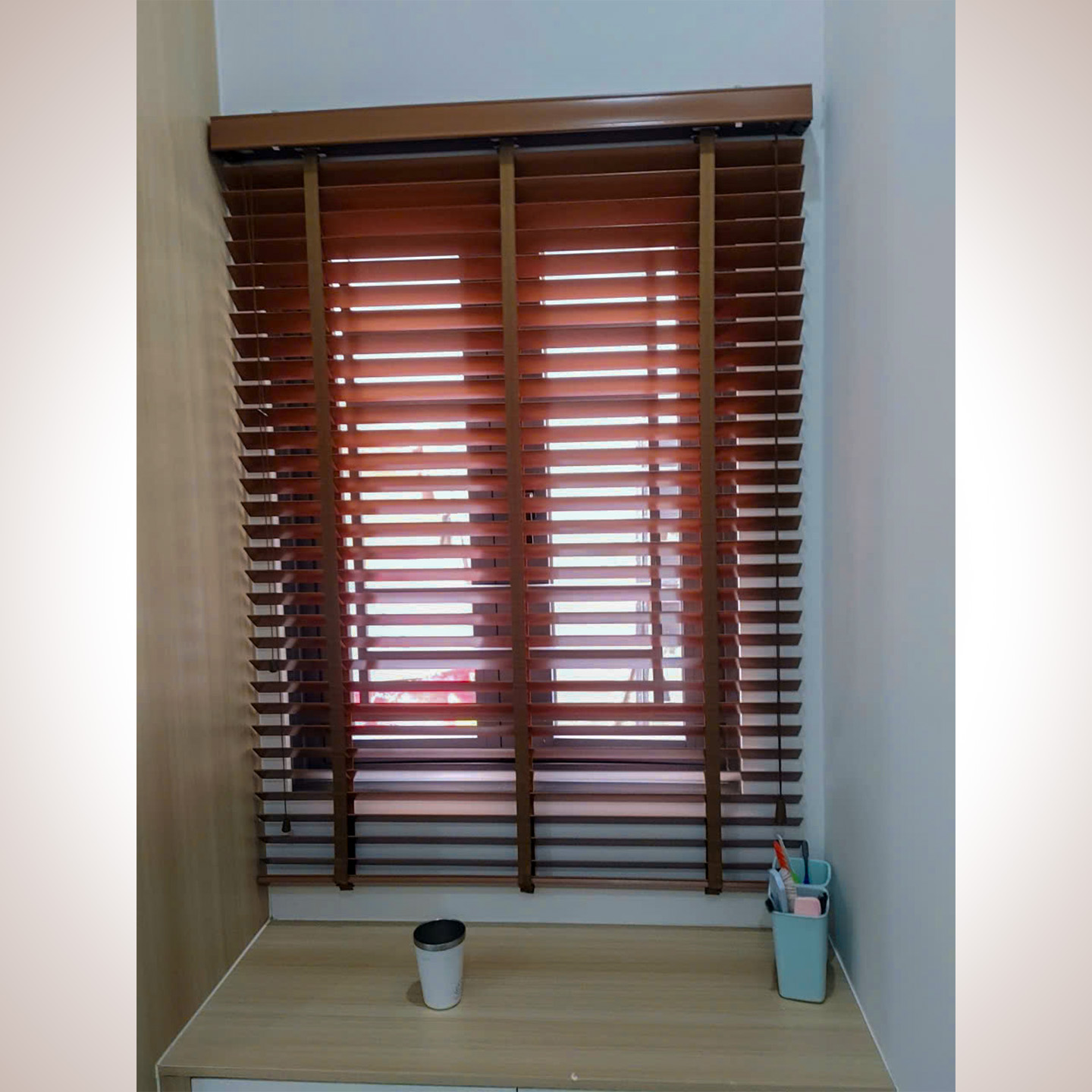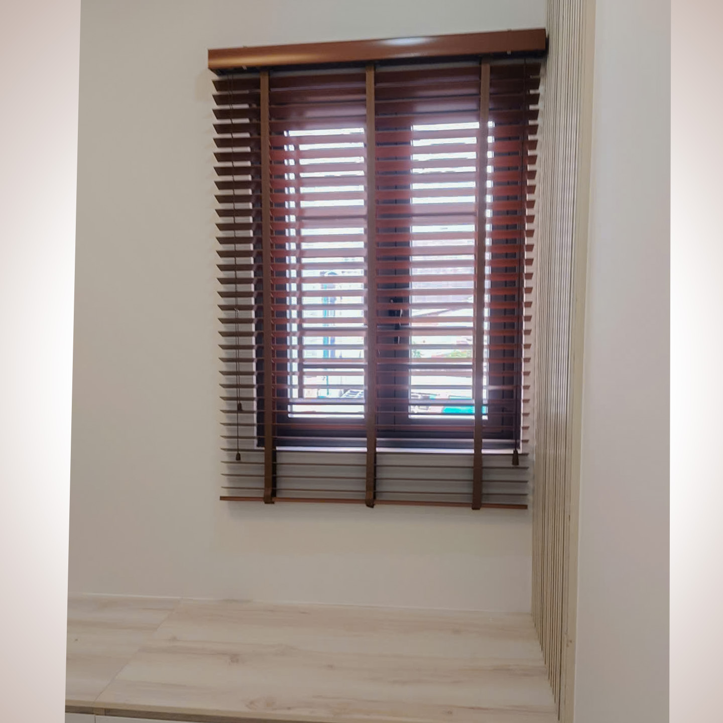 Công năng ưu việt: Rèm sáo gỗ không chỉ mang lại vẻ đẹp tân cổ điển, sang trọng mà còn giúp điều tiết ánh sáng linh hoạt chỉ bằng một thao tác xoay lật. Sắc gỗ nâu trầm hòa quyện cùng nội thất tạo nên cảm giác ấm cúng, gần gũi với thiên nhiên.