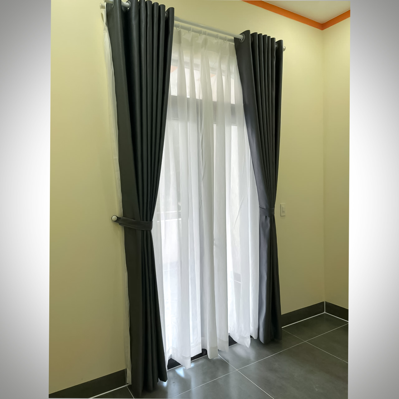 - Lớp Vải Chính: Lớp rèm này được làm từ vải 3 lớp cao cấp, có bề mặt vân nổi nhẹ, tạo cảm giác sang trọng. Với khả năng chống nắng lên đến 99%, cách nhiệt và giảm thiểu tiếng ồn hiệu quả, lớp vải này mang lại không gian yên tĩnh, thư thái. Màu xám đậm dễ dàng phối hợp với nhiều phong cách nội thất, từ hiện đại đến cổ điển.