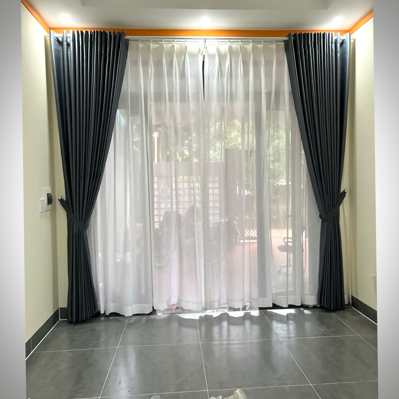 - Lớp Voan Trắng: Nằm phía trong, lớp voan mỏng với họa tiết tinh tế giúp lọc ánh sáng tự nhiên một cách mềm mại. Khi bạn cần sự riêng tư nhưng vẫn muốn căn phòng tràn ngập ánh sáng, chỉ cần vén lớp rèm vải chính và giữ lại lớp voan. Ánh sáng sẽ được khuếch tán nhẹ nhàng, tạo hiệu ứng lung linh, lãng mạn cho căn phòng.
